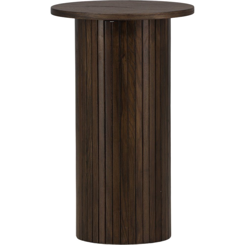Sidobordet är den perfekta kombinationen av smart och stilrent! Sidobordet har en iögonfallande skandinavisk design och lämpar sig för flera användningsområden. Det är genomgående tillverkat i MDF med fanér i en jordnära mockafärg som snabbt ger rummet ett modernt lyft. Bordsskivan är tunn i en rund utformning och stommen är robust med cylinderformat ben i ribbad design. Ett utmärkt tillskott i hemmet som höjer stilnivån några steg.