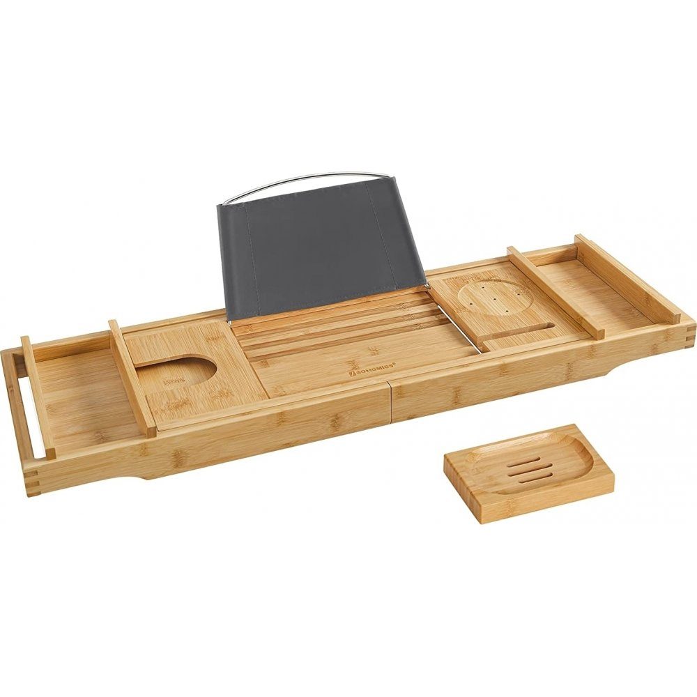 Unna dig en avkopplande stund i badet med denna vackra badkarsbricka i bambu. Den naturliga träfinishen ger en varm och lyxig känsla samtidigt som den är både hållbar och vattenavvisande.