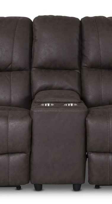 Denna 2-sits soffa har en konsolmodul i mitten med förvaring och drickahållare! El-reclinerfunktion i båda sitsarna.