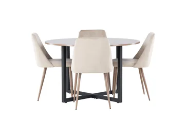 Lanzo Matgrupp 120 cm Rund med 4 Modesto Stolar, Natur