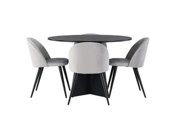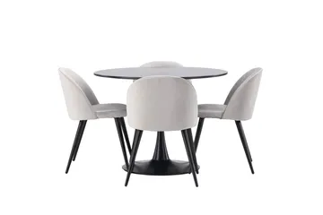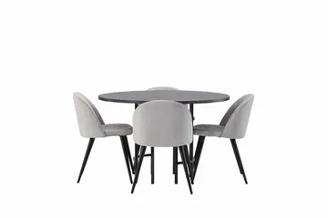 Copenhagen Matgrupp 115 cm Rund med 4 Velvet stolar, Grå