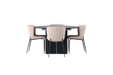 Matilda Matgrupp 130 cm Rund med 4 Edina Stolar, Svart
