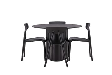 Lanzo Matgrupp 120 cm Rund med 4 Selma Stolar, Svart