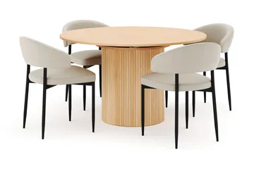 Kopparbo Runt Matbord 130 cm Förlängningsbart med 4 Sawako Stolar, Svart