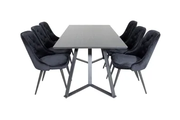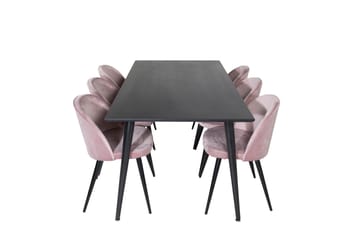 Dipp Matgrupp 180 cm Rektangulär med 6 Velvet stolar, Svart