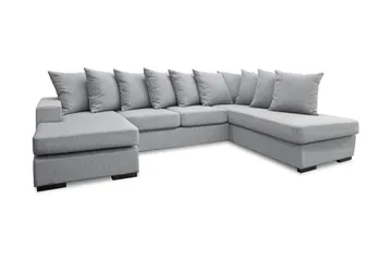 Med en U-soffa får du en vanlig sittdel och två divaner som tillsammans bildar ett U. Även om man bara är tre personer så är det alltid trevligast om man kan sitta runt ett bord istället för bredvid varandra. En soffa i behagligt mjuk och lättskött klädsel gör vardagsrummet till den samlingspunkt som man vill ha, oavsett om man är två eller flera som vill sitta ner tillsammans.