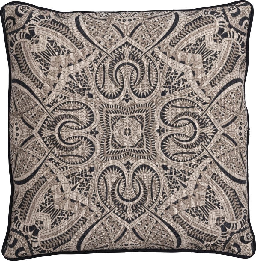 Prydnadskudde i bomull med mönster på framsidan. Baksida i enfärgat beige. Dragkedja på baksidan.