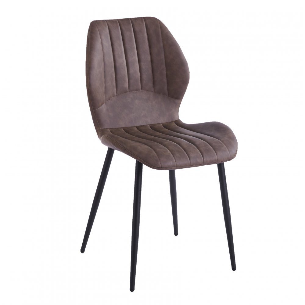 Santos matstol i brun vintage konstläder med matchande metallben i mattsvart lack.