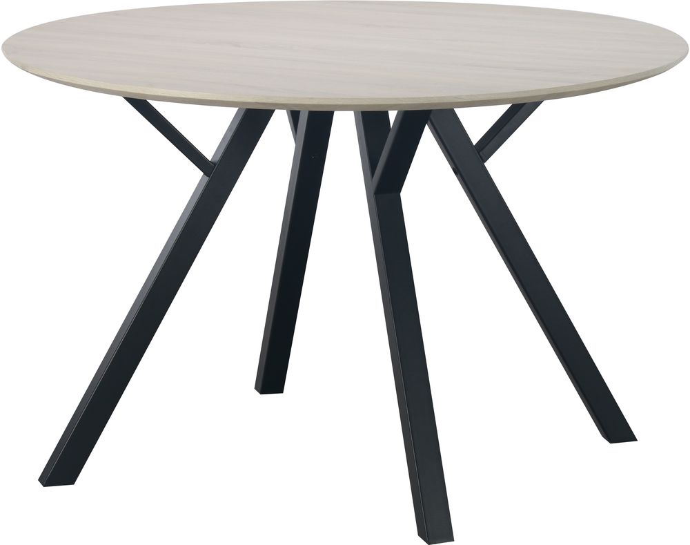 Matgrupp från Skånska Möbelhuset, Smokey matbord 120 cm i diameter med mdf-toppskiva med ljus betsad ekfoliering. Medföljer 4 st matchande Carisma sammetstolar i korallrosa sammet med svarta ben.